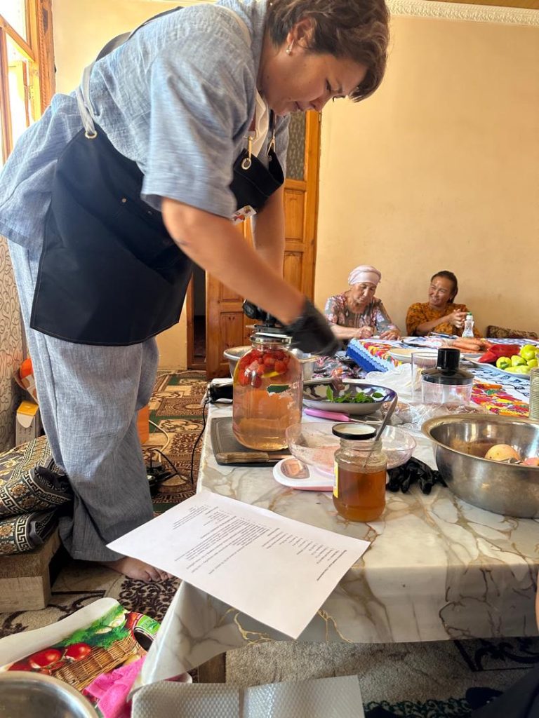 В ходе тренинга участницы научились готовить кака, компот «Мохито» и салат из баклажанов. Тренер объяснила, что они смогут перерабатывать свежие овощи и фрукты со своих огородов и не только готовить еду для семьи, но и получать дополнительный доход, продавая её.